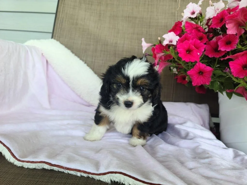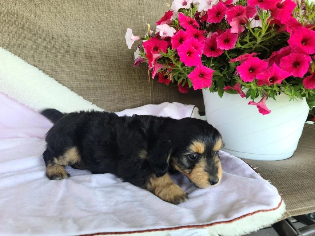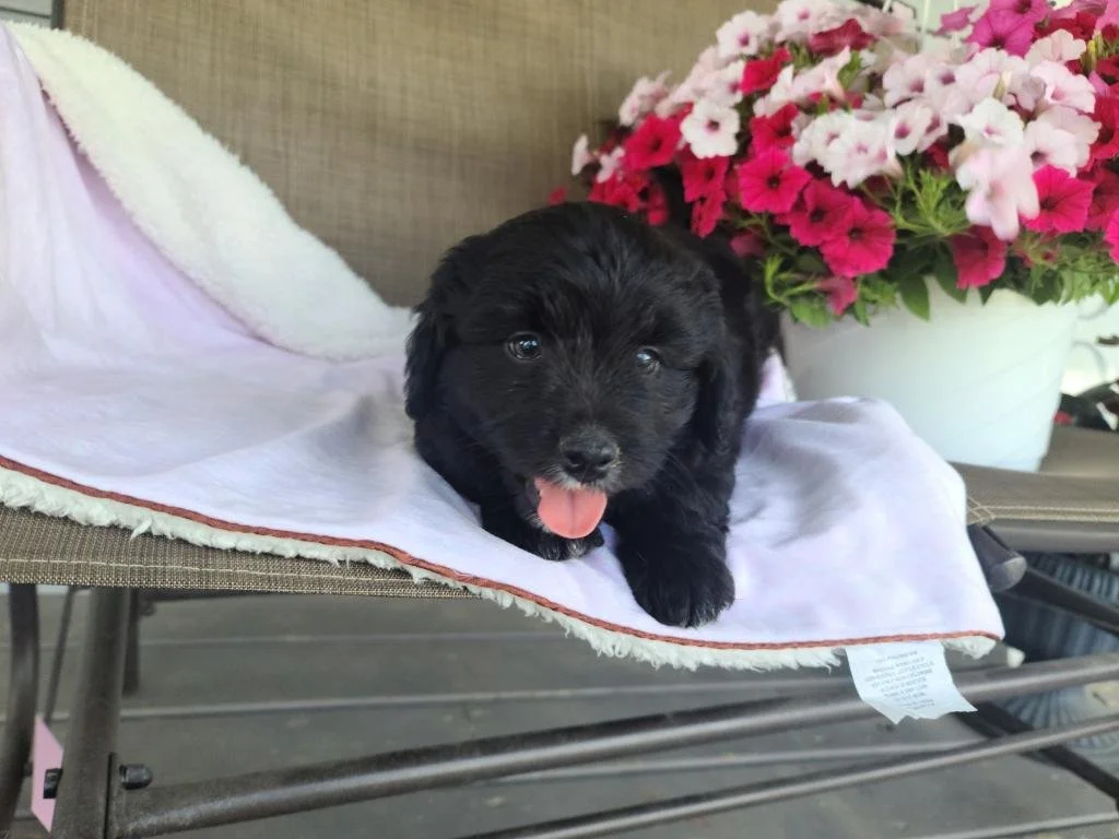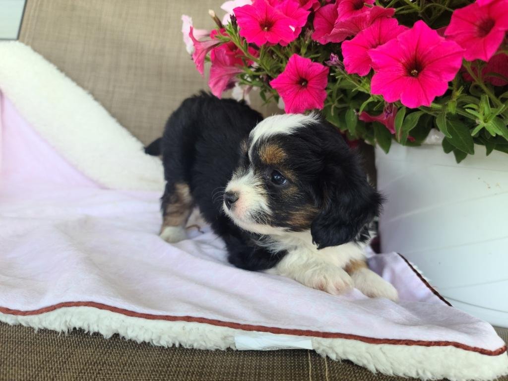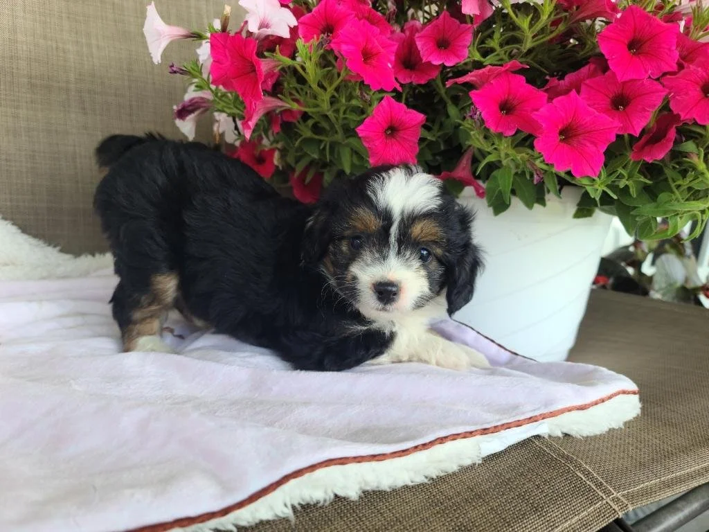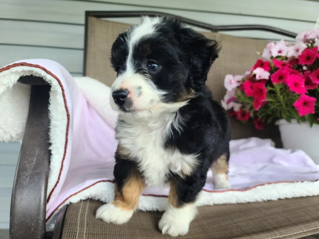 Beautiful toy Aussiedoodles that should weigh around 12 lbs. Quite a selection of colors in this litter - there are phantoms, black tuxedos, chocolate tuxedo, black, and black party. One pup has a merle collar!!